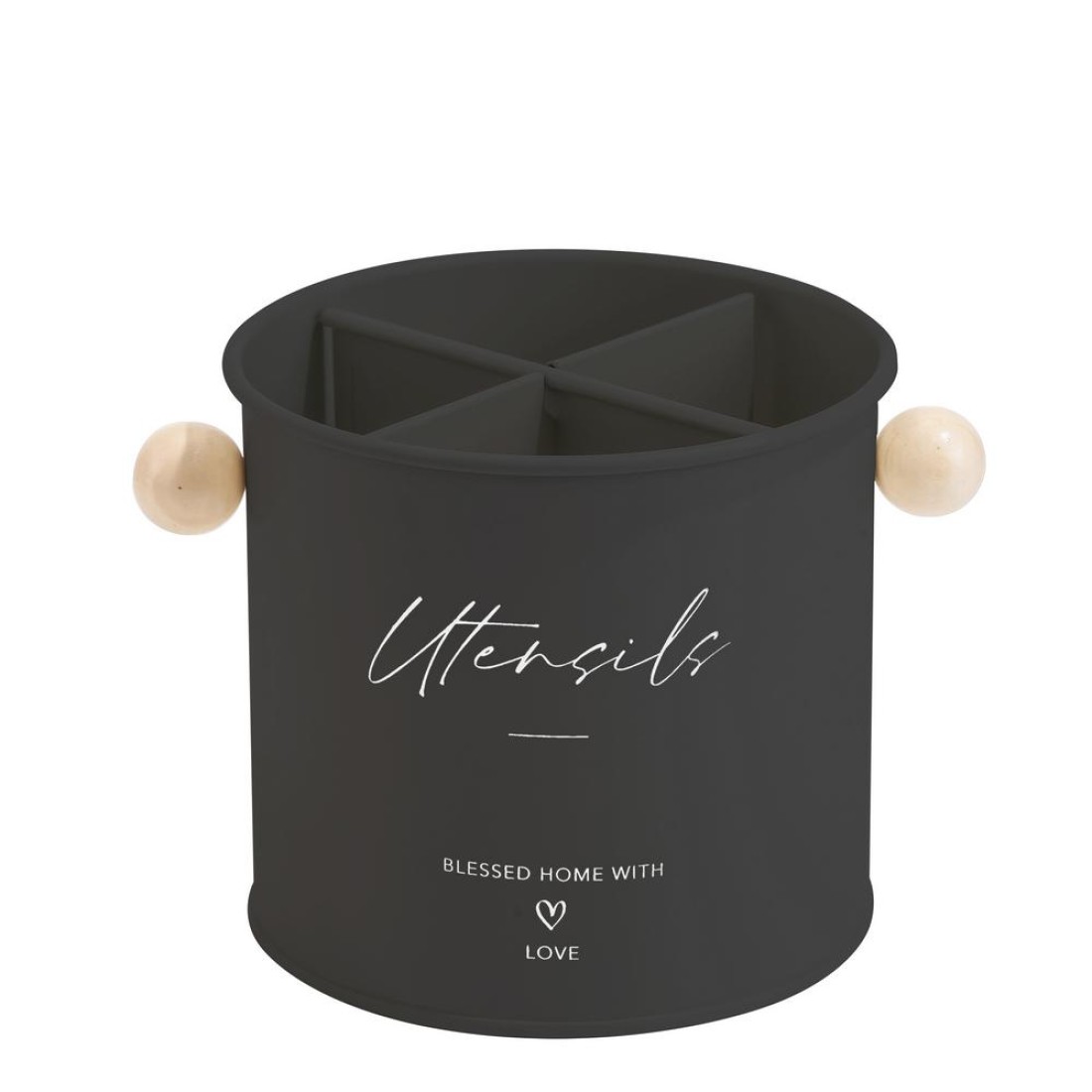 Επιτραπέζια κουταλοθήκη Kitchen Trend της Oriana Ferrelli σε μαύρο χρώμα, με 4 πρακτικά χωρίσματα για εύκολη οργάνωση μαχαιροπίρουνων. Με διάμετρο 13,5 cm, αποτελεί κομψή και λειτουργική λύση για το τραπέζι ή τον πάγκο της κουζίνας. Ιδανική για καθημερινή χρήση και εύκολη πρόσβαση στα σκεύη σερβιρίσματος.